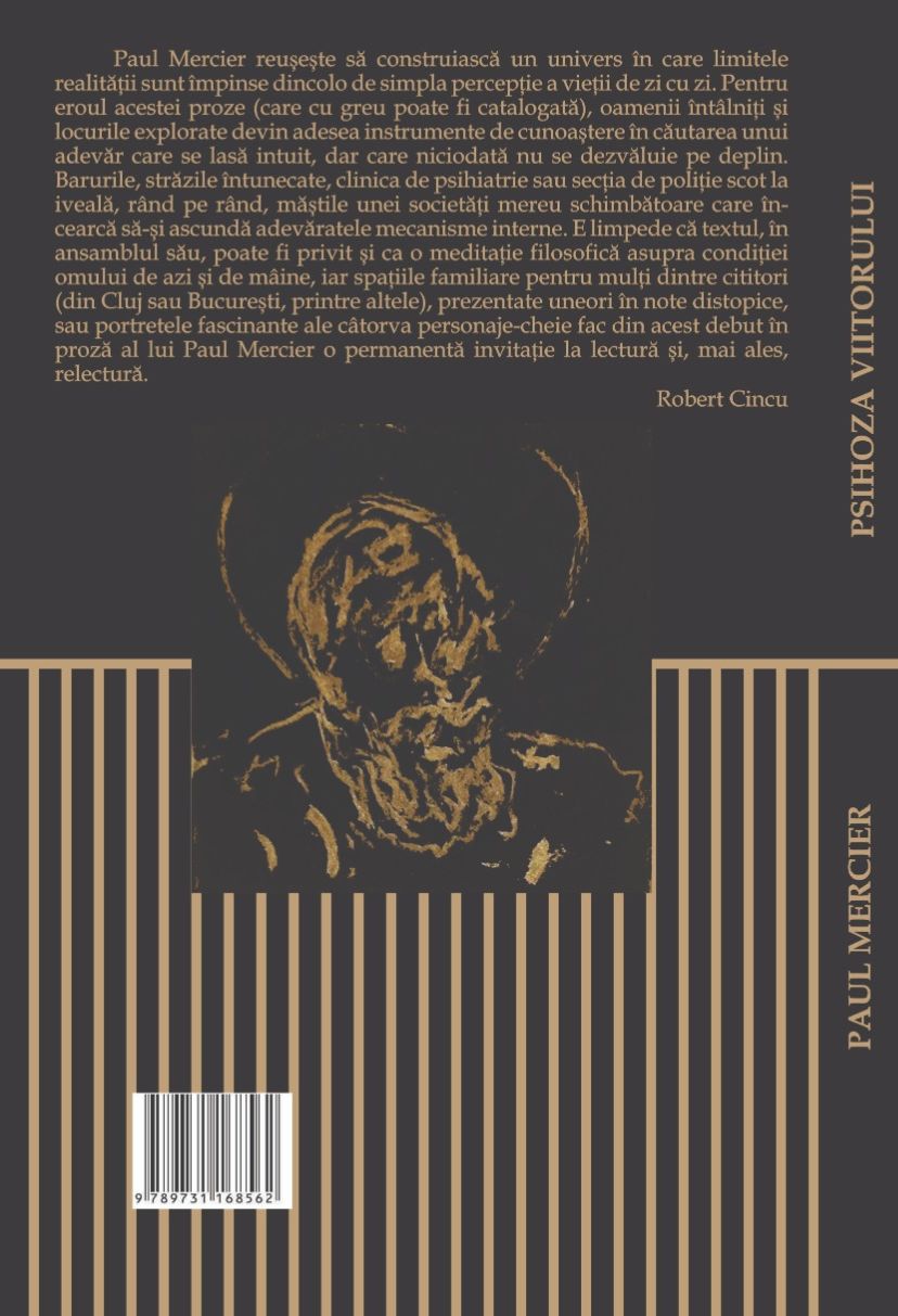 Raportat la cele prezentate, pentru că am vorbit despre Psihoza viitorului sau cum am vizitat luminile interzise, de Paul Mercier, invitat al ediției de astăzi a emisiunii noastre, conchidem prin cuvintele lingvistului Robert Cincu atât despre Paul, cât și despre cartea sa: „Paul Mercier reușește să construiască un univers în care limitele realității sunt împinse dincolo de simpla percepție a vieții de zi cu zi. Pentru eroul acestei proze (care cu greu poate fi catalogată), oamenii întâlniți și locurile explorate devin adesea instrumente de cunoaștere în căutarea unui adevăr care se lasă intuit, dar care niciodată nu se dezvăluie pe deplin. Barurile, străzile întunecate, clinica de psihiatrie sau secția de poliție scot la iveală, rând pe rând, măștile unei societăți mereu schimbătoare, care încearcă să-și ascundă adevăratele mecanisme interne. E limpede că textul, în ansamblul său, poate fi privit și ca o meditație filosofică asupra condiției omului de azi și de mâine, iar spațiile familiare pentru mulți dintre cititori (din Cluj sau București, printre altele), prezentate uneori în note distopice, sau portretele fascinante ale câtorva personaje-cheie fac din acest debut în proză al lui Paul Mercier o permanentă invitație la lectură și, mai ales, relectură”.