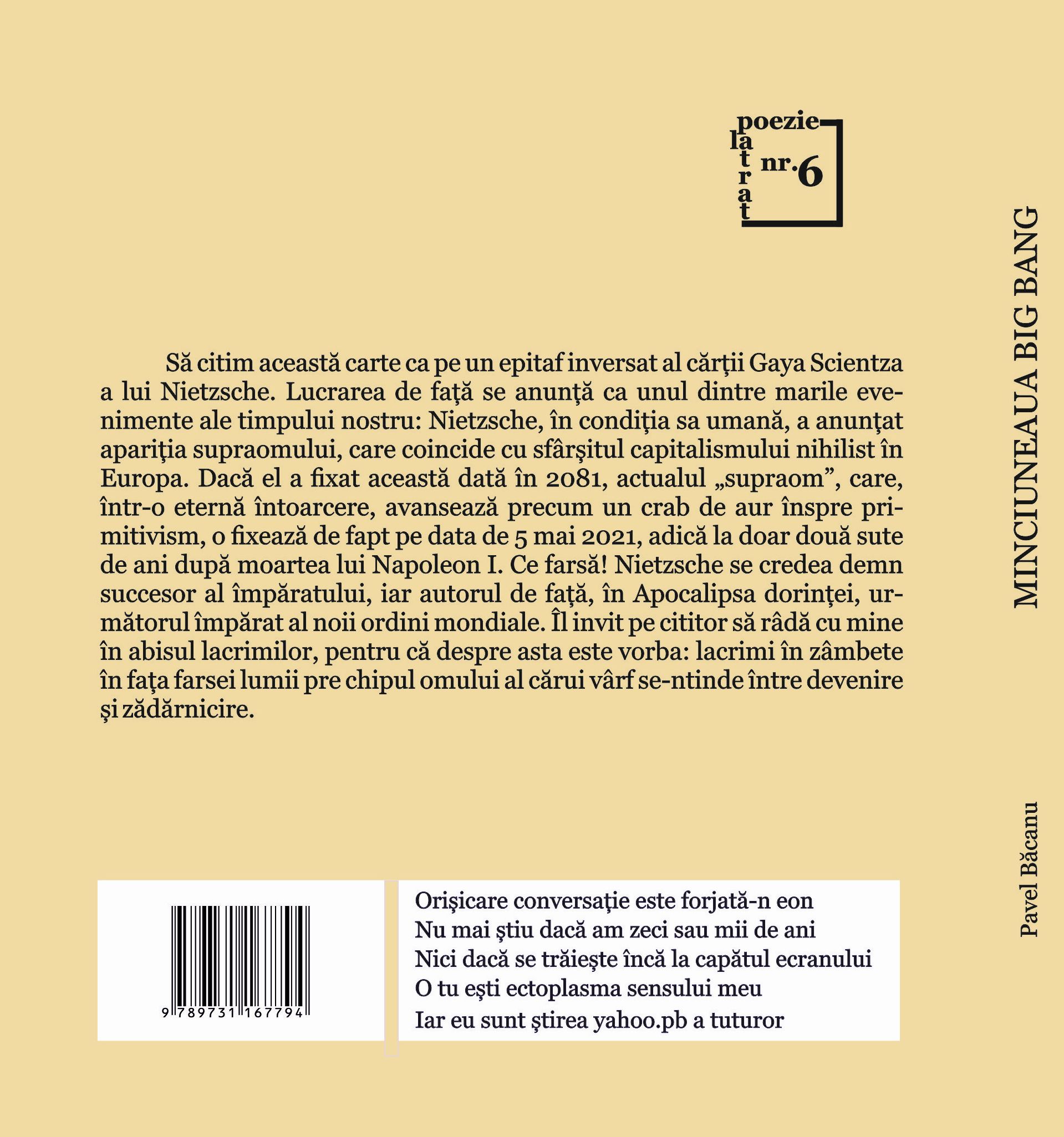 În cele ce urmează, invitatul nostru ne vorbește despre – Minciuneaua Big Bang, volum apărut, nu demult, la Editura Vasiliana 98 din Iași, o carte de poezie scrisă „într-o furie inspirațională”, după cum ne precizează autorul.