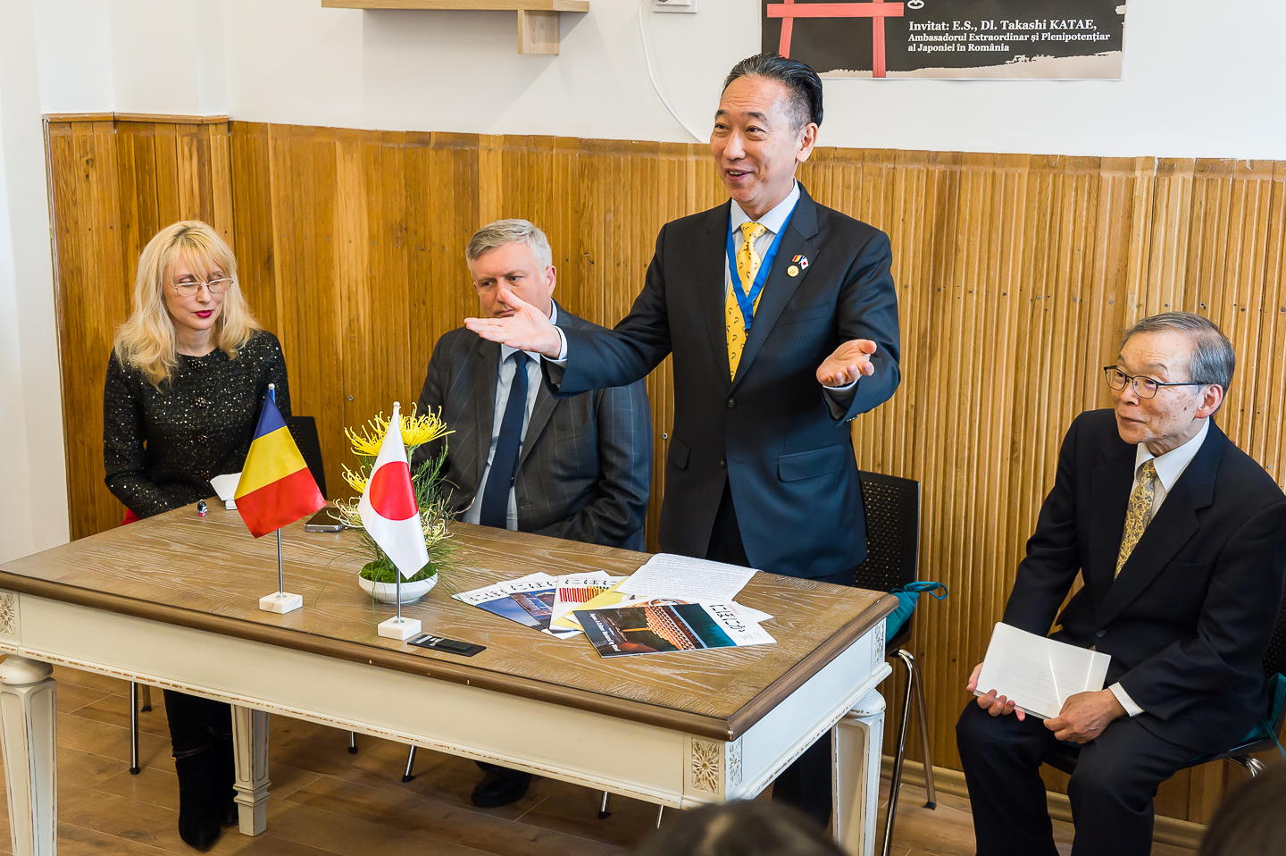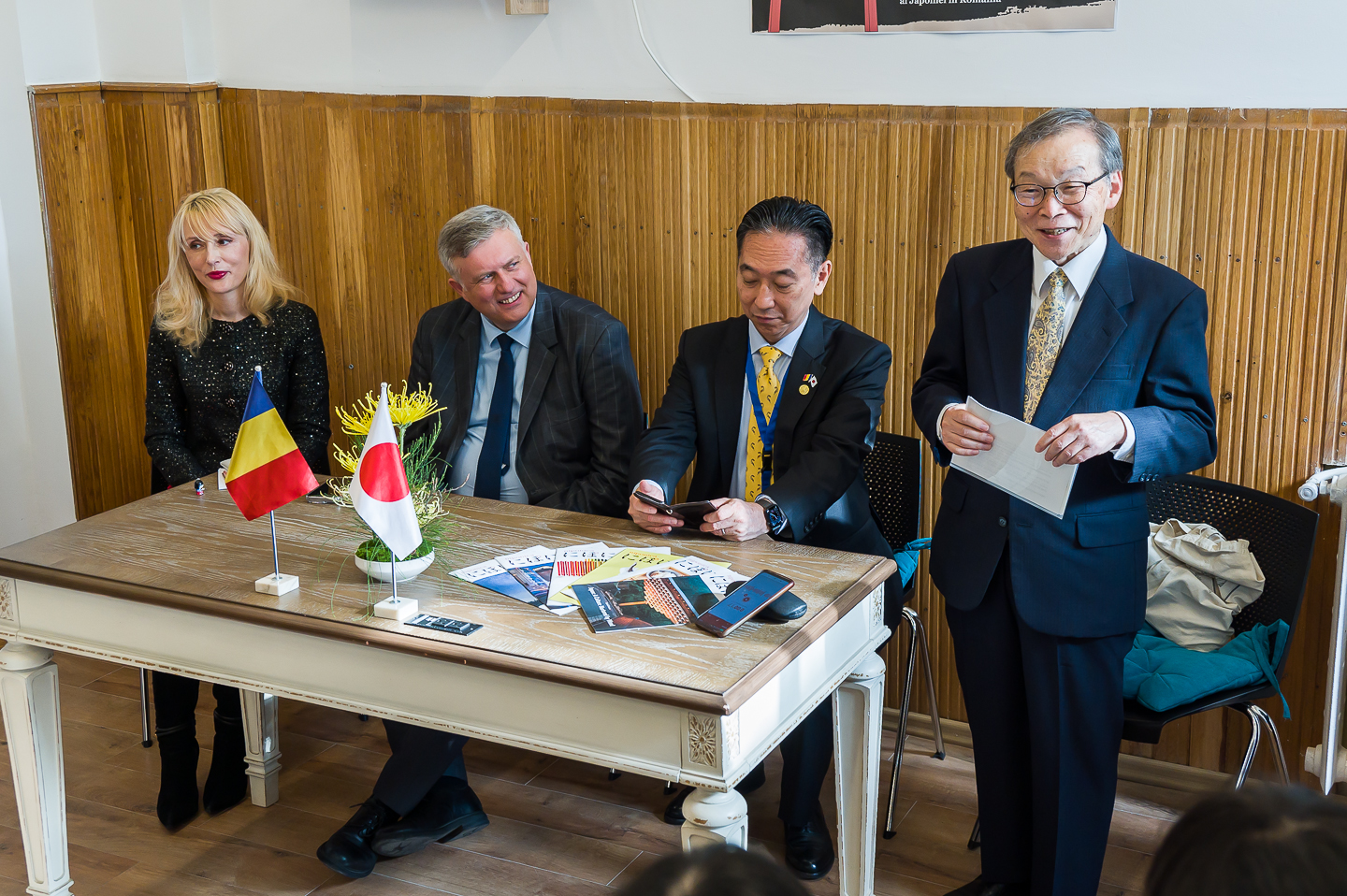 La inaugurare au participat Excelența Sa domnul Takashi Katae, Ambasadorul Extraordinar și Plenipotențiar al Japoniei în România; prof. univ., doctor în Științe Economice, Liviu-George Maha, rector al Universității „Alexandru Ioan Cuza”; conf. univ., doctor în Filologie, Dorina Claudia Tărnăuceanu, decanul Facultății de Litere a Universității „Alexandru Ioan Cuza”; profesorul Shingo Suzuki, director onorific al Centrului Cultural Japonez al UAIC; prorectori, decani, profesori, studenți.